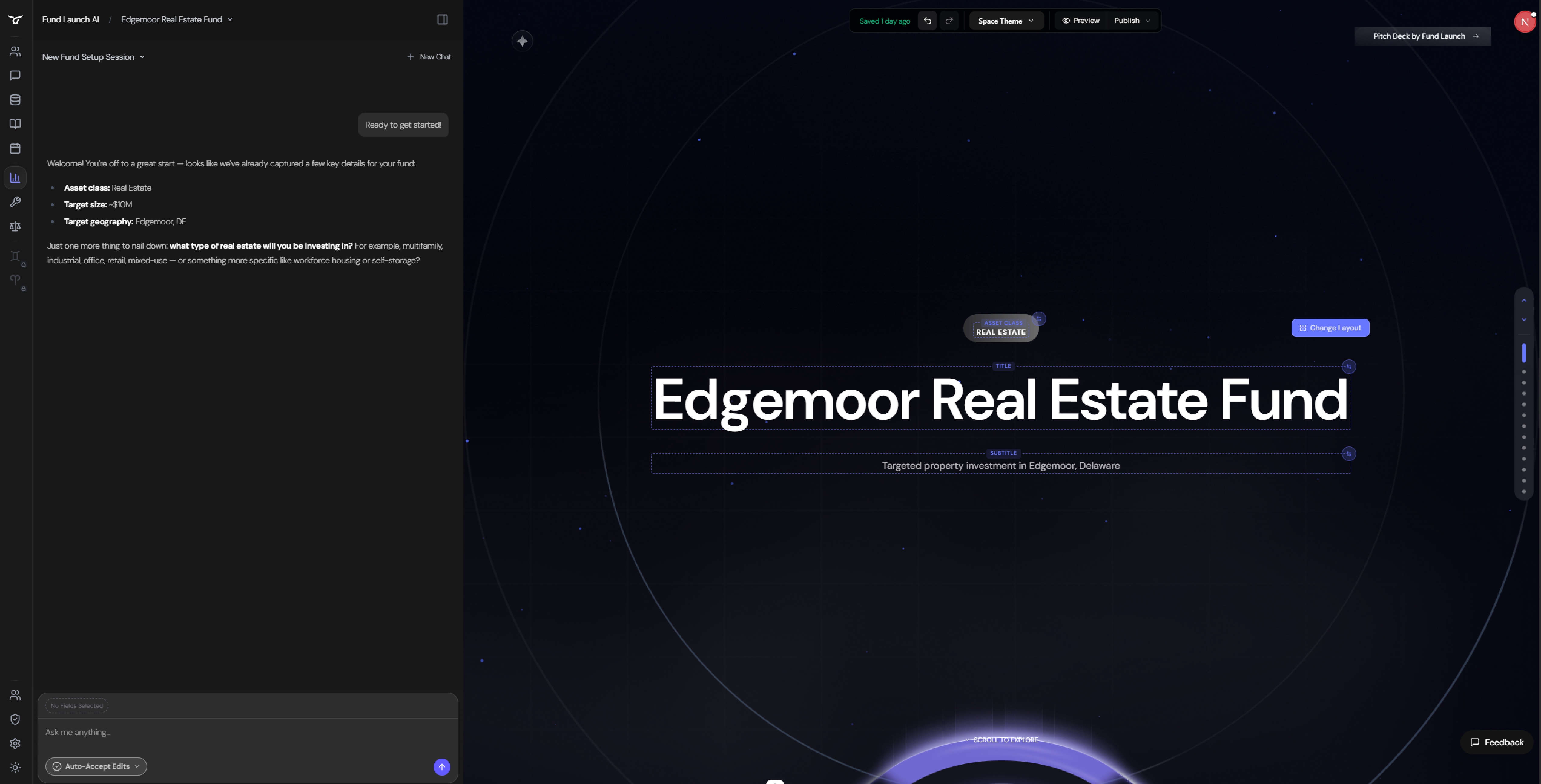 Built a fully agentic workflow for fund creation, combining scrolldecks, legal template generation, and a guided fund builder into one product experience.